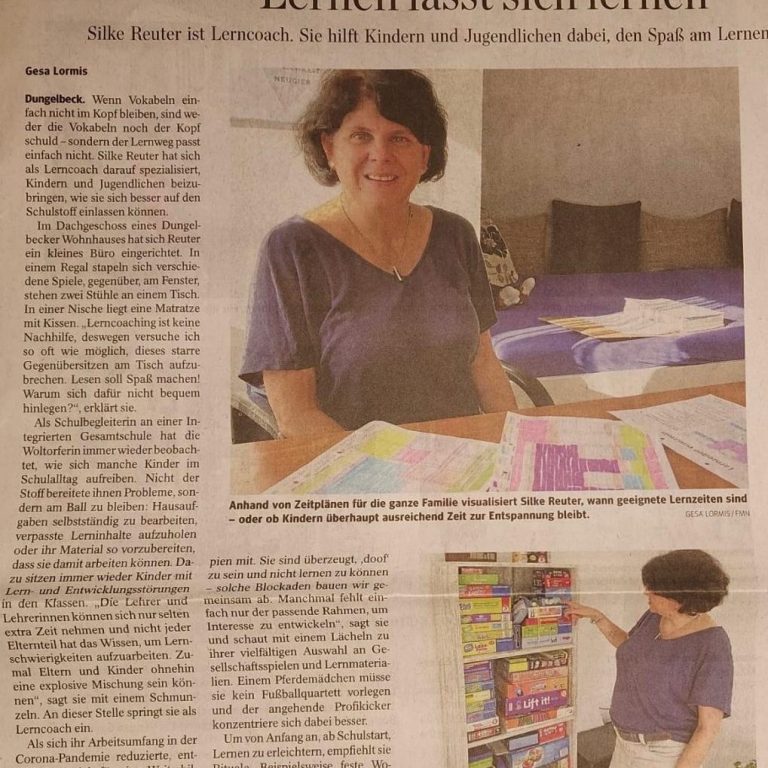 Unser Sohn Ramiro, 13 Jahre, geht seit März 2025 zum Lerncoaching zu Frau Reuter. Er ist sehr zufrieden und konnte sich schon verbessern, was das Lernen angeht. Die einfachen und entspannten Methoden gefallen Ramiro sehr. Wenn es Probleme in der Schule gibt, spricht Frau Reuter auch mit den Lehrern. Wir sind sehr zufrieden.
